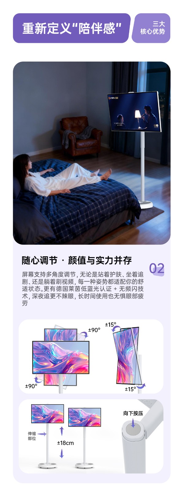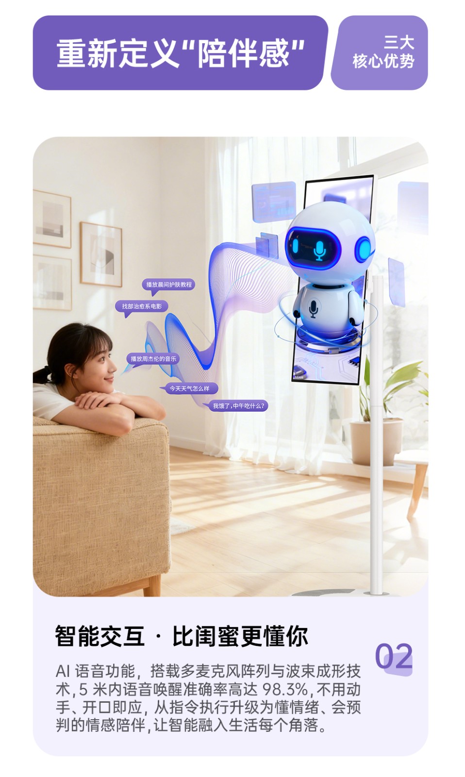 華視閨蜜機(jī)是一款智能化的語(yǔ)音交互機(jī)器人,旨在提供便捷的生活服務(wù)。華視閨蜜機(jī)是一種全新的產(chǎn)品形態(tài),不僅屏幕夠大還可以移動(dòng)旋轉(zhuǎn),是集平板電腦、電視、健身鏡、音箱及學(xué)習(xí)機(jī)于一體的超級(jí)產(chǎn)品。