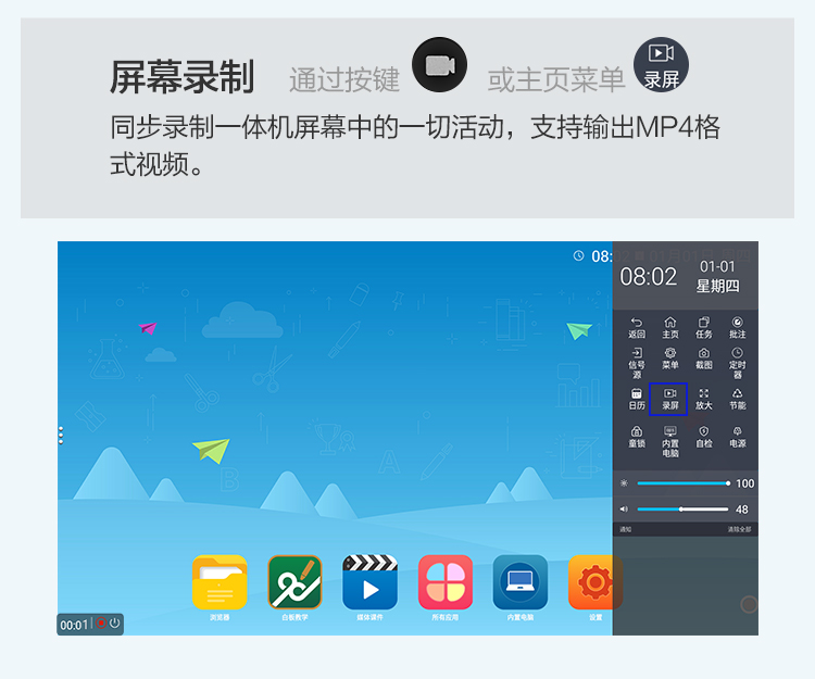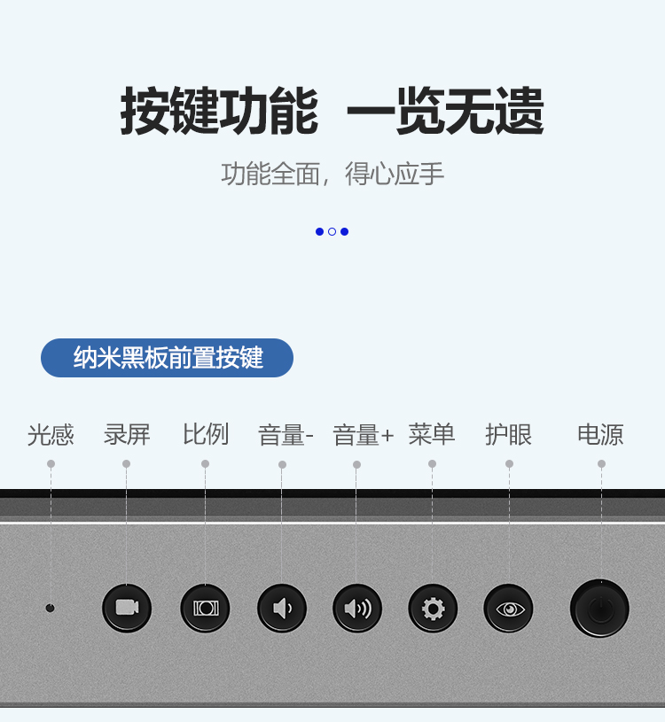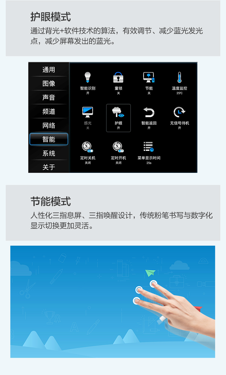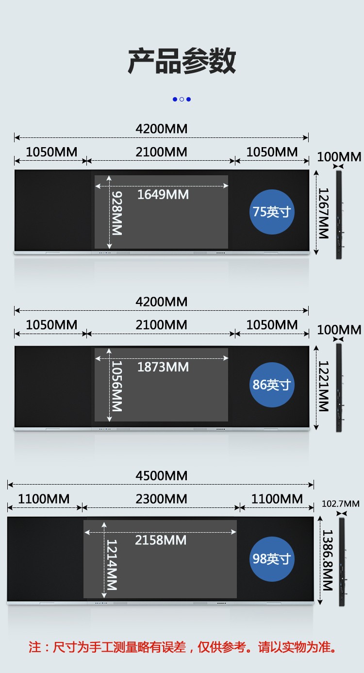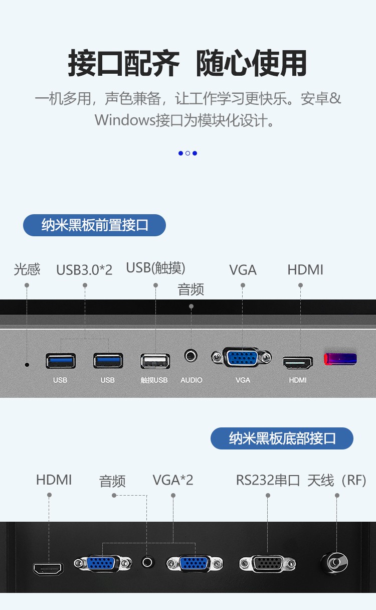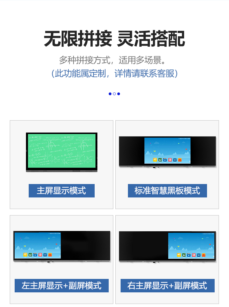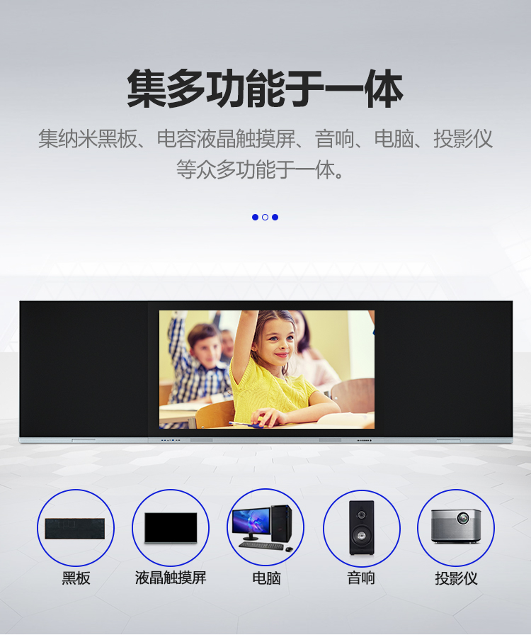 集多功能于一體 集納米黑板、電容液晶觸摸屏、音響、電腦、投影儀等眾多功能于一體;視聽(tīng)結(jié)合智慧教學(xué)可靈活運(yùn)用教學(xué)工具,調(diào)用優(yōu)質(zhì)教學(xué)資源,使教學(xué)過(guò)程視聽(tīng)結(jié)合、手腦并用、學(xué)玩一體,互動(dòng)性更好;4K超清顯示眼界大開(kāi)3840*2160超清4K分辨率,畫(huà)質(zhì)清晰絢麗。178°寬廣視角,帶來(lái)沉浸般的震撼體驗(yàn),每個(gè)角度學(xué)生清晰易讀。