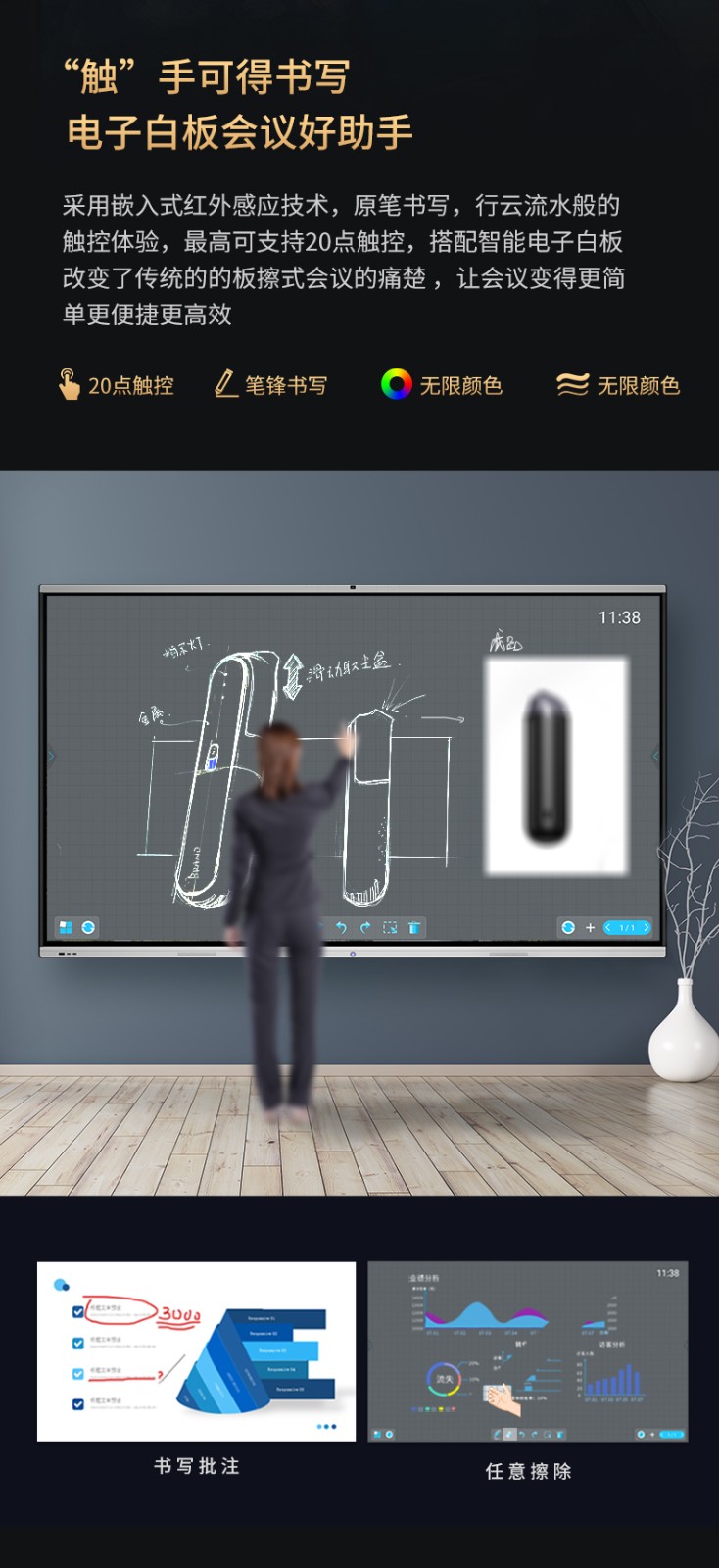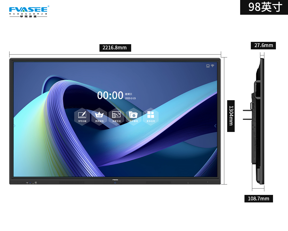 華視偉業(yè)(FVASEE)98寸交互式多點會議觸摸屏一體機,六機合一(電視、電腦、廣告機、投影儀、電子白板、音響)是一種新型觸摸多媒體教學方案,是將大尺寸的顯示器(LCD/PDP/背投)轉(zhuǎn)變?yōu)橐粋€大型的交互觸摸顯示設備。98寸紅外觸摸屏采用紅外線發(fā)射和阻斷原理。紅外線觸摸屏,是高度集成的電子線路整合產(chǎn)品。