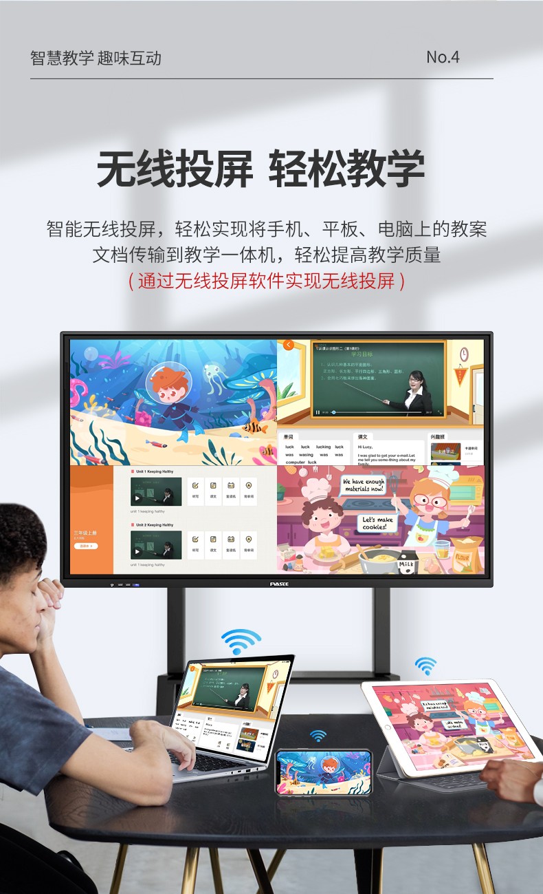 華視偉業(yè)(FVASEE)交互式多點(diǎn)觸摸屏一體機(jī),六機(jī)合一(電視、電腦、廣告機(jī)、投影儀、電子白板、音響)是一種新型觸摸多媒體教學(xué)方案,是將大尺寸的顯示器(LCD/PDP/背投)轉(zhuǎn)變?yōu)橐粋€大型的交互觸摸顯示設(shè)備。紅外觸摸屏采用紅外線發(fā)射和阻斷原理。紅外線觸摸屏,是高度集成的電子線路整合產(chǎn)品。
