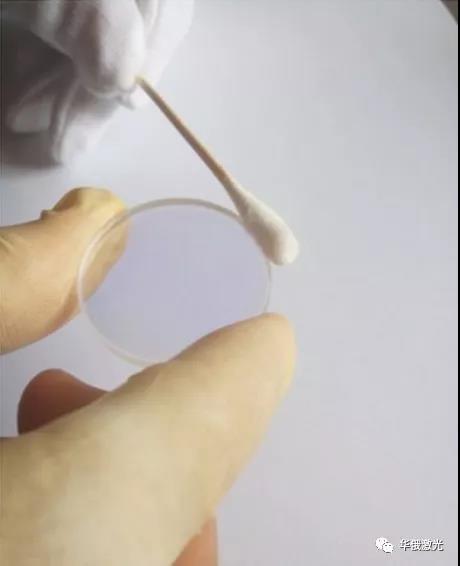 4.用丙酮浸濕絨頭棉簽,用它清潔鏡片表面,以去除在清潔過程中殘留的所有無水乙醇和拋光液殘留物。當(dāng)用丙酮進(jìn)行最后的清潔工作時,請在鏡片表面輕輕拖動棉簽,拭去原先留下的痕跡,直到整個表面都被擦拭干凈為止。再用棉簽做出最后一個擦拭動作,應(yīng)慢慢移動,以確保棉簽后面的表面能立即變干,這可消除表面的條痕。某些類型的污染或損壞(如金屬飛濺物,坑洞等)是無法去除的。如果鏡片表面有上述污染或損壞,且無法清潔還原,應(yīng)放棄清潔,更換為新鏡片,以保證切割質(zhì)量。