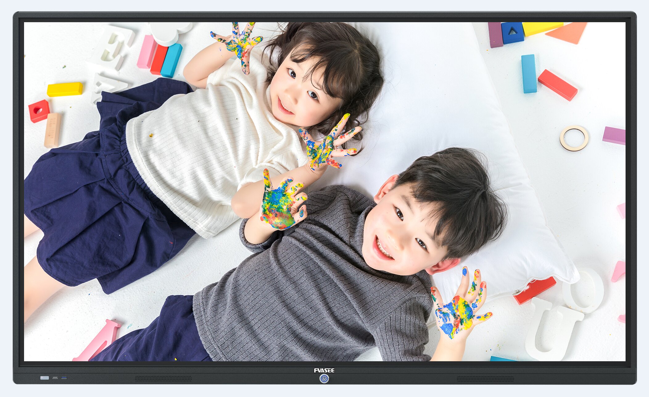 華視偉業(yè)(FVASEE)75寸交互式多點幼教觸摸屏一體機,六機合一(電視、電腦、廣告機、投影儀、電子白板、音響)是一種新型觸摸多媒體教學方案,是將大尺寸的顯示器(LCD/PDP/背投)轉變?yōu)橐粋€大型的交互觸摸顯示設備。75寸紅外觸摸屏采用紅外線發(fā)射和阻斷原理。紅外線觸摸屏,是高度集成的電子線路整合產(chǎn)品。