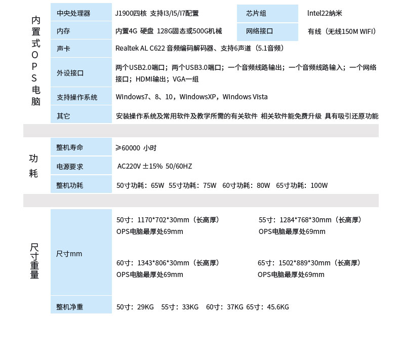 | 整機壽命 | ≥60000小時 | WIFI/網(wǎng)卡 | 有(150/1000mbs) |