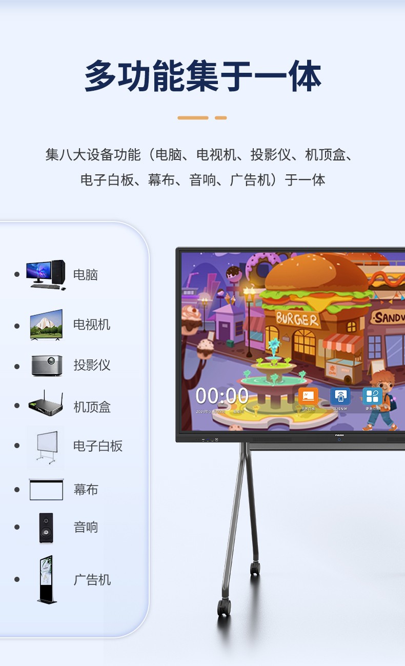 華視偉業(yè)(FVASEE)85寸交互式多點觸摸屏一體機,六機合一(電視、電腦、廣告機、投影儀、電子白板、音響)是一種新型觸摸多媒體教學方案,是將大尺寸的顯示器(LCD/PDP/背投)轉變?yōu)橐粋€大型的交互觸摸顯示設備。85寸紅外觸摸屏采用紅外線發(fā)射和阻斷原理。紅外線觸摸屏,是高度集成的電子線路整合產(chǎn)品。